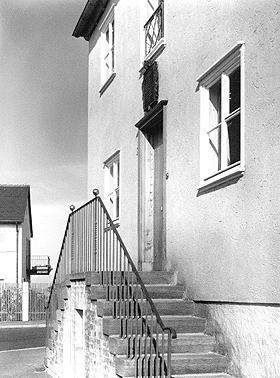 [6/39] Haus Nr. 1, Architekt Paul SchmitthennerNordseite mit Gedenktafel über der Eingangstür, Stuttgart 1933